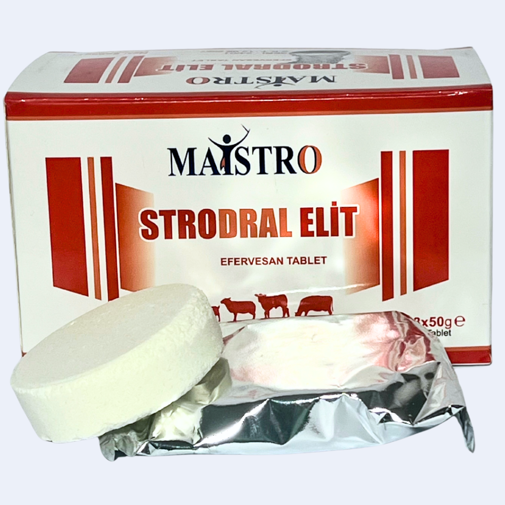 - STRODRAL ELİT, başta buzağı, tay, kuzu, oğlak olmak üzere tüm hayvanlarda dehidrasyonun giderilmesi için özel olarak formüle edilmiş bir efervesan tozdur. Yüksek etkili formülü ile hayvanların vücut sıvı dengesini hızla geri kazanmalarına yardımcı olur, elektrolit kaybını önler ve iyileşme süreçlerini hızlandırır.